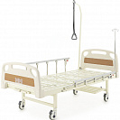 Кровать - 4-х секционная с винтовым (механическим) приводом регулировки угла наклона спинной и ножной секций. Основание кровати выполнено из стали, покрыто ударопрочной эпоксидной эмалью. Съемные спинки головы и ног с противоударными бамперами выполнены из ABS-пластика. Выдвижной регулятор положения ложа расположен в ножной части кровати, что позволяет персоналу легко регулировать положение ложа. Боковые ограждения (2шт) выполнены из алюминия и легко опускаются, обеспечивая быстрый доступ к пациенту. Несущие колеса кровати изготовлены из высокопрочной стали и закрыты декоративными колпаками, придающими кровати современный внешний вид.